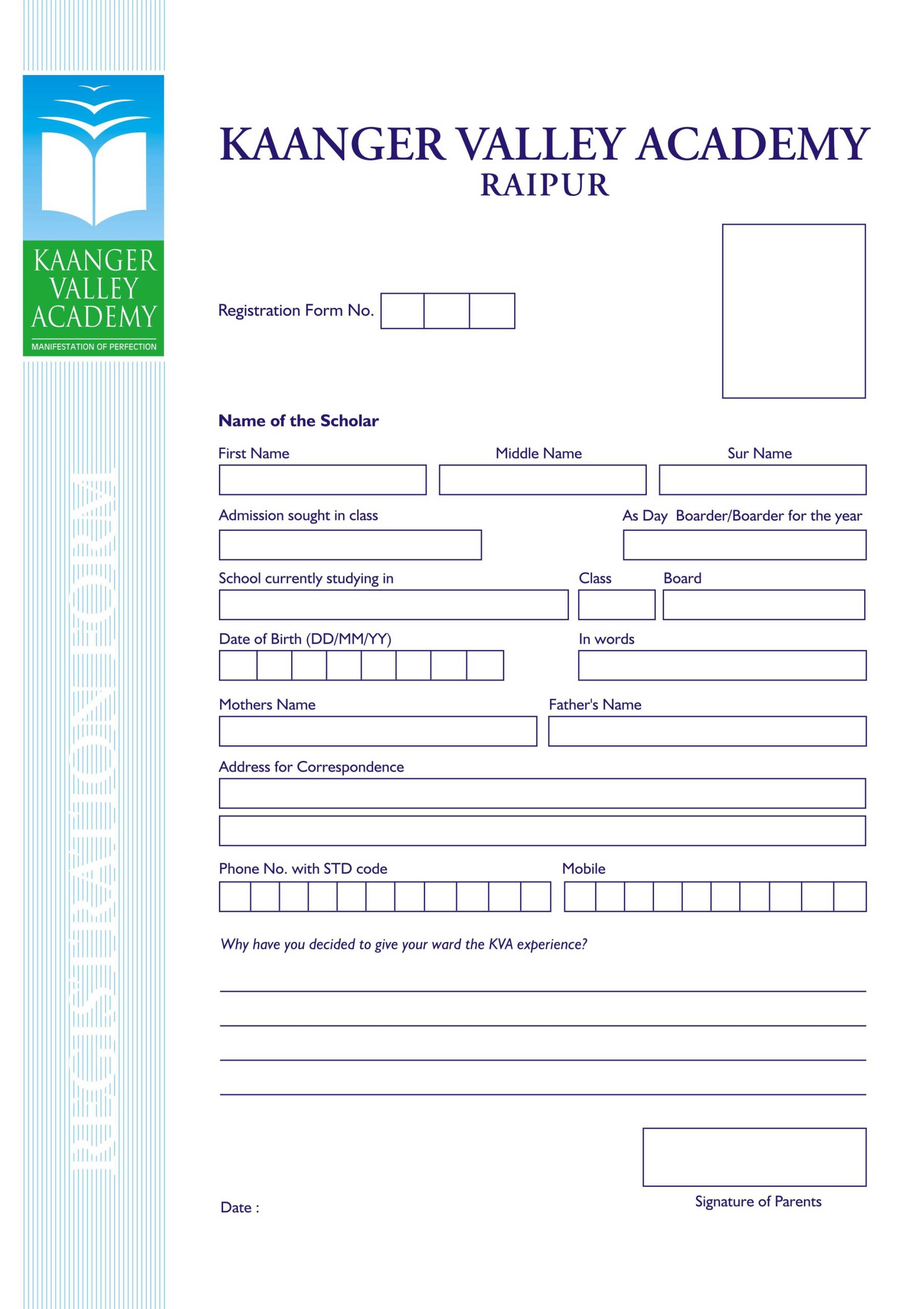 - Registration form can also be availed at the Reception Desk against payment of Rs. 4000/- (cash/DD). You can also download Enquiry form through our website Admissions-Download Registration Form and send us the form via post with a DD of Rs.4000/- or the same form can be duly filled and submitted at the Reception.